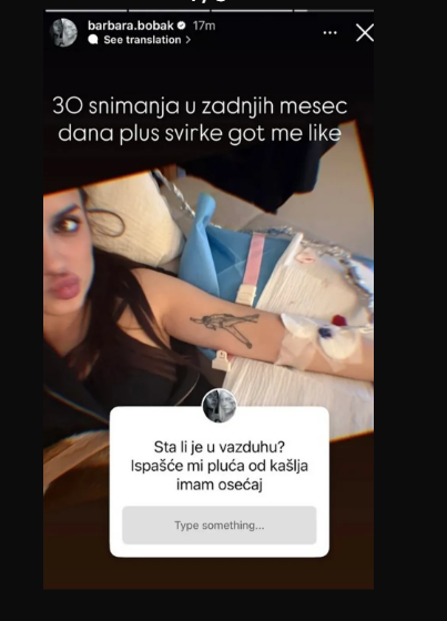 Ona nije želela da ide u bolnicu, već infuziju prima kod kuće, a na Instagramu je podelila da se ne oseća dobro.
