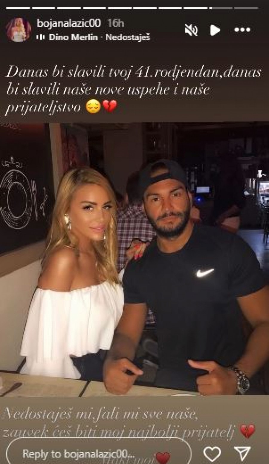 „Danas bi slavili tvoj 41. rođendan. Danas bi slavili naše nove uspehe i naše prijateljstvo. Nedostaješ mi, fali mi sve naše. Zauvek ćeš biti moj najbolji prijatelj. Maki moj“ – napisala je Bojana.