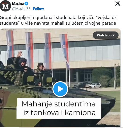 Bošković tvrdi: “Vojnik koji je tokom parade mahao građanima i studentima pozvan na disciplinsku odgovornost”