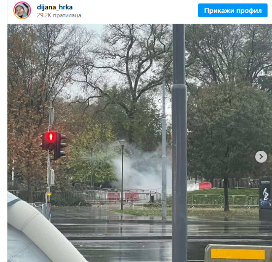 Hrka se jutros oglasila na Instagramu, navodeći da je u „Ćacilendu“ bačen topovski udar. Objavila je i fotografiju na kojoj se vidi ulaz u Pionirski park kod Skupštine, opasan ogradama, iza kojih se može primetiti dim.