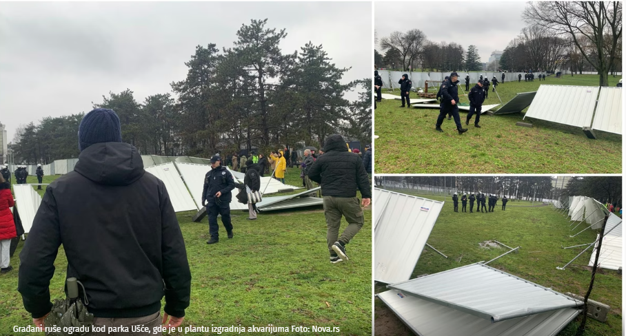 Na Ušće su stigli i studenti Poljoprivrednog fakulteta, a tokom protesta došlo je do obaranja dela ograde. Policija je prisutna na terenu i reagovala je tako što je stala između građana i ograde, praktično je obezbeđujući, prenosi Mašina.rs.