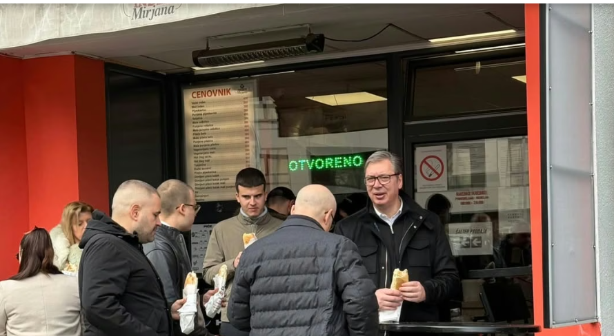 Predsednik Srbije Aleksandar Vučić juče je posetio Novi Sad i doručkovao sa predsednikom SNS Milošem Vučevićem i njihovim sinovima Danilom i Mihailom u Novom Sadu.