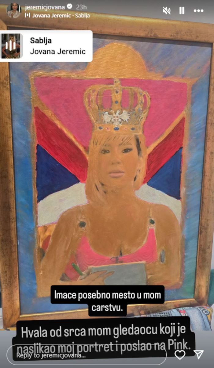 Najpre je pokazala personalizovano alkoholno piće sa čašama za šampanjac i posebnom porukom. Otkrila je i da joj je u studio stigao poklon od gledalaca – njen portret na platnu, koji je odlučila da okači u dnevnom boravku pored slike lava.