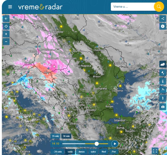Kako se vidi na radarskim snimcima sajta Vreme radar, nakon veoma hladnog jutra, u popodnevnim satima, oko 14 časova, nova količina ledene kiše stiže sa zapada, odnosno iz Hrvatske.