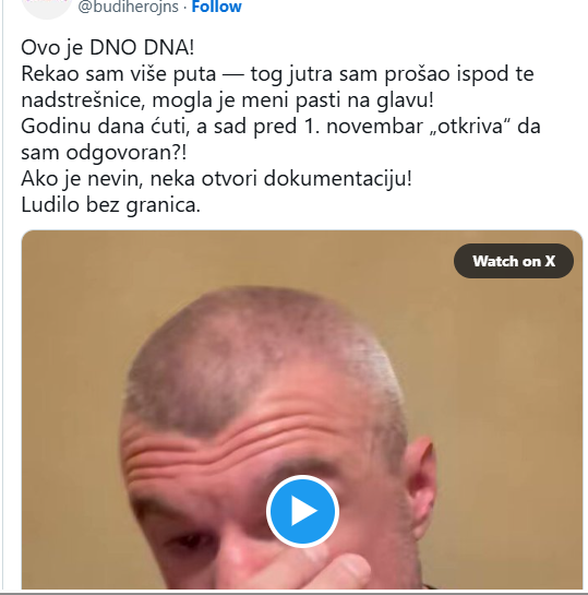 U emisiji Hit tvit prikazan je video snimak od 1. novembra prošle godine, kada je pala nadstrešnica, na kojem se vidi lider pokreta Budi Heroj, Miša Bačulov, kako nekoliko sati pre pada šeta ispred Železničke stanice. Iako je video prikazan bez dodatnog objašnjenja, predsednik Srbije Aleksandar Vučić izjavio je da je taj snimak dobio tek pre 10 dana. Sam Bačulov tvrdi da nikada nije krio da je tog dana putovao vozom za Beograd.