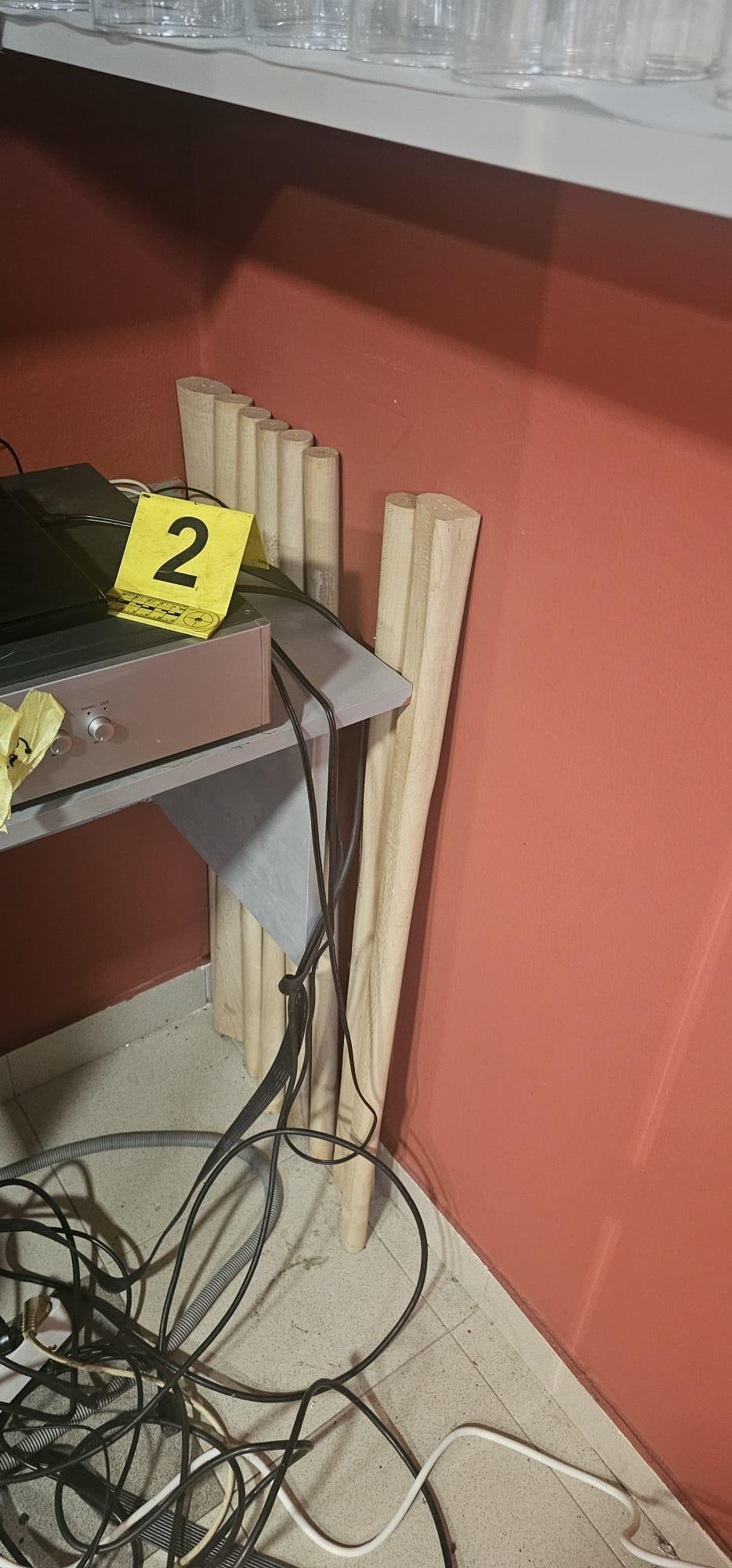Tokom pretresa stana i drugih prostorija na tri adrese koje osumnjičeni koristi, pronađeni su i privremeno oduzeti sledeći predmeti: dva telefona, jedan laptop, majica koju je imao na sebi 18. avgusta, prilikom izvršenja krivičnog dela, kao i deset drvenih palica pripremljenih za sutrašnji dan — kada se obeležava godinu dana od tragedije na železničkoj stanici u Novom Sadu, u kojoj je zbog pada nadstrešnice stradalo 16 ljudi.