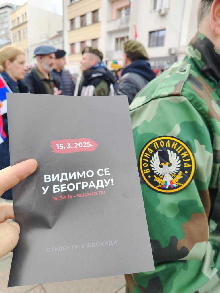 Veterani Vojske Srbije, koji su služili na Kosovu i Metohiji, odlučili su da pruže podršku studentima i građanima okupljenim 15. marta u Beogradu na velikom protestu. Siniša Jevtić, jedan od veterana, izjavio je za portal Nova.rs da će brojni njegovi saborci učestvovati u obezbeđenju skupa, naglašavajući kako ih inspiriše snaga i istrajnost mladih ljudi koji odlučno “marširaju” u Srbiji.