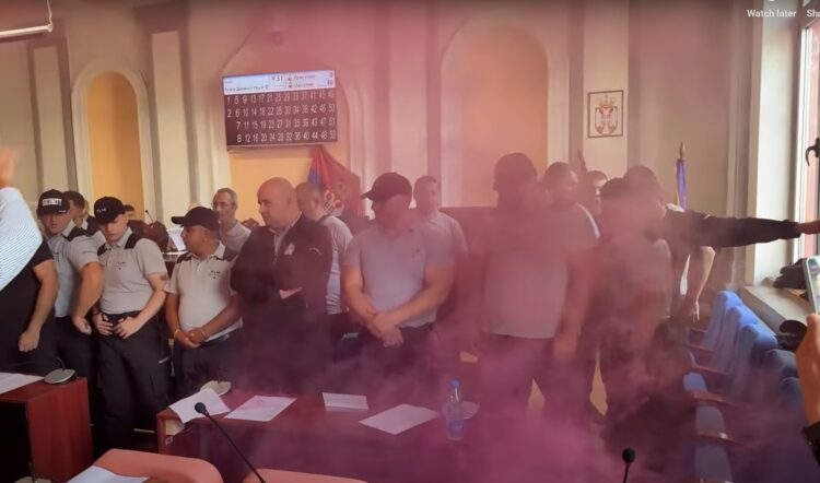 Opozicija je pokušala da spreči održavanje sednice. U sali su bačeni dimna bomba i biber sprej, dok je privatno obezbeđenje, koje je bilo angažovano za ovu priliku, fizički nasrtalo na odbornike, čak ih, prema navodima prisutnih, tuklo i davilo na njihovim radnim mestima.