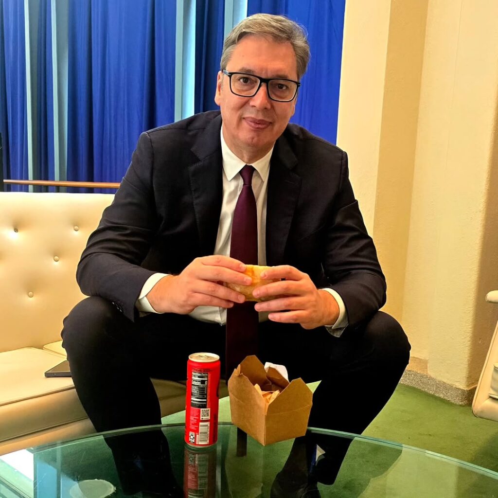 Američki predsednik Donald Tramp organizovao je tradicionalni prijem i večeru za gotovo sve svetske lidere tokom zasedanja Generalne skupštine Ujedinjenih nacija u Njujorku, a Aleksandar Vučić na toj večeri NIJE BIO. Postavlja se pitanje šta je tačno u izjavama Ane Brnabić i Marka Đurića, koji su sada izrazili ogorčenje i uznemirenje. Ako su tvrdili da je Vučić imao važniji bilateralni sastanak u isto vreme, postavlja se pitanje sa kim — budući da su gotovo svi ostali iz Evrope i sveta prisustvovali Trampovoj večeri, osim Putina, Lukašenka i, kako se tvrdi, Vučića.