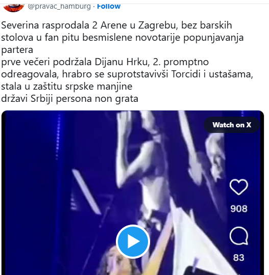 Momenat koji je takođe postao viralan je Severinino obraćanje Hrvatima koji su sprečili nastup članova novosadskog folklornog udruženja na Danima srpske kulture.