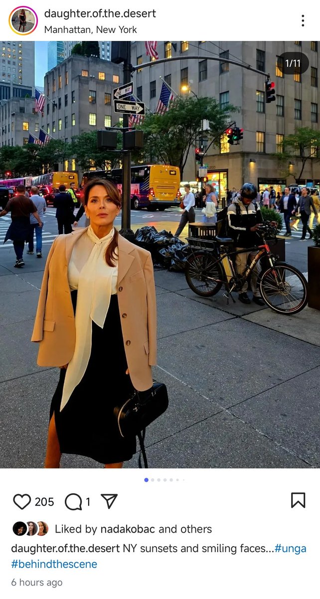 Na Instagramu, gde koristi nadimak „Daughter of the desert“ (?!) i drži profil zatvorenim za javnost, objavila je fotografiju koja je ubrzo počela da kruži internetom. Iako prvobitno podeljena sa ograničenim brojem pratilaca, slika je brzo završila u širem opticaju, izazvavši brojne komentare – pre svega zbog primetnih izmena u foto-obradi. Posebnu pažnju privukao je neobičan položaj desne noge, što je izazvalo lavinu duhovitih i ironičnih reakcija: