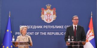 Predsednik Srbije Aleksandar Vučić i predsednica Evropske komisije Ursula fon der Lajen obratili su se javnosti nakon današnjeg sastanka održanog u Palati Srbije.