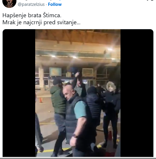 Sada se pojavio i nešto duži snimak hapšenja Štimca od gotovo dva minuta, na kojem se vidi kako izrazito niži pripadnici policije savladavaju Štimca, što je čudno uopšte napisati, jer ni u jednom trenutku nije pružao otpor, rekavši da je “sve u redu”.
