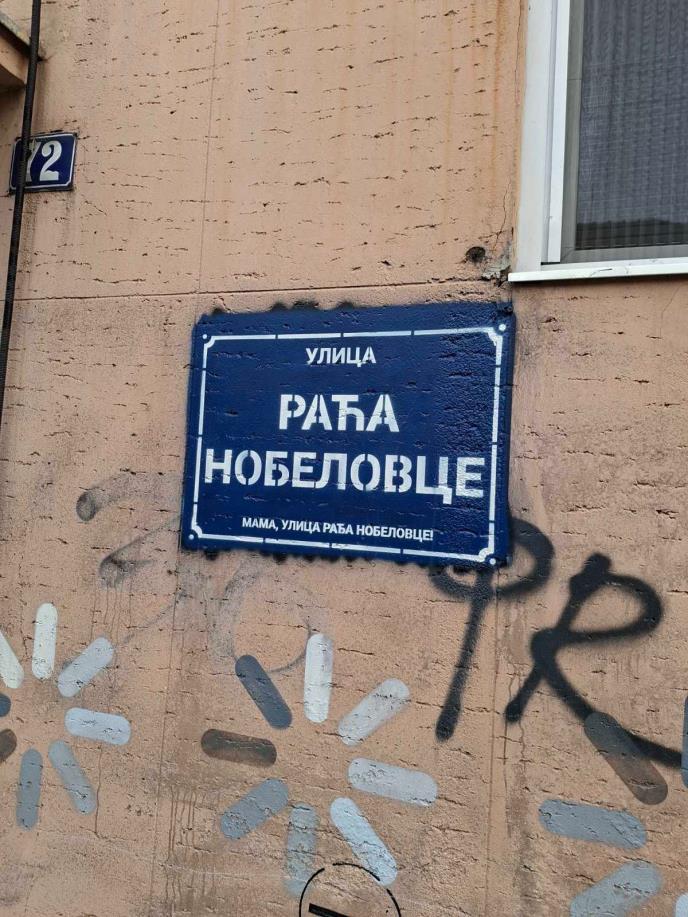 Grupa studenata napravila je grafit u ulici Kneginje Zorke na Vračaru sa porukom „Ulica rađa Nobelovce“. Međutim, prilikom ispisivanja došlo je do pravopisne greške – umesto reči „rađa“, napisano je „raća“.